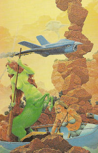 Rocky has become Gaea’s enemy and lives by hiding, moving from place to place, making allies among the creatures on the planet, such as the Titanides, a centaur like race whose sex is determined by front sexual organs, but who also have both sexes in the rear. The Titanides are the exact opposite of humans and possess all the skills to have a peaceful and loving civilization, but they have become caught up in the struggle against Gaea and are strong allies with Rocky. Chris, who became romantically involved with a Titanide female in <I>Wizard</I> is now turning into a Titanide himself, gradually. Robin, who returned to her Coven, returns now with a grown daughter (Chris is the father) and a baby boy. Through some genetic trick, Gaea has somehow managed to make Chris the father of Robin’s new baby boy, Adam. They were both immaculate conceptions.